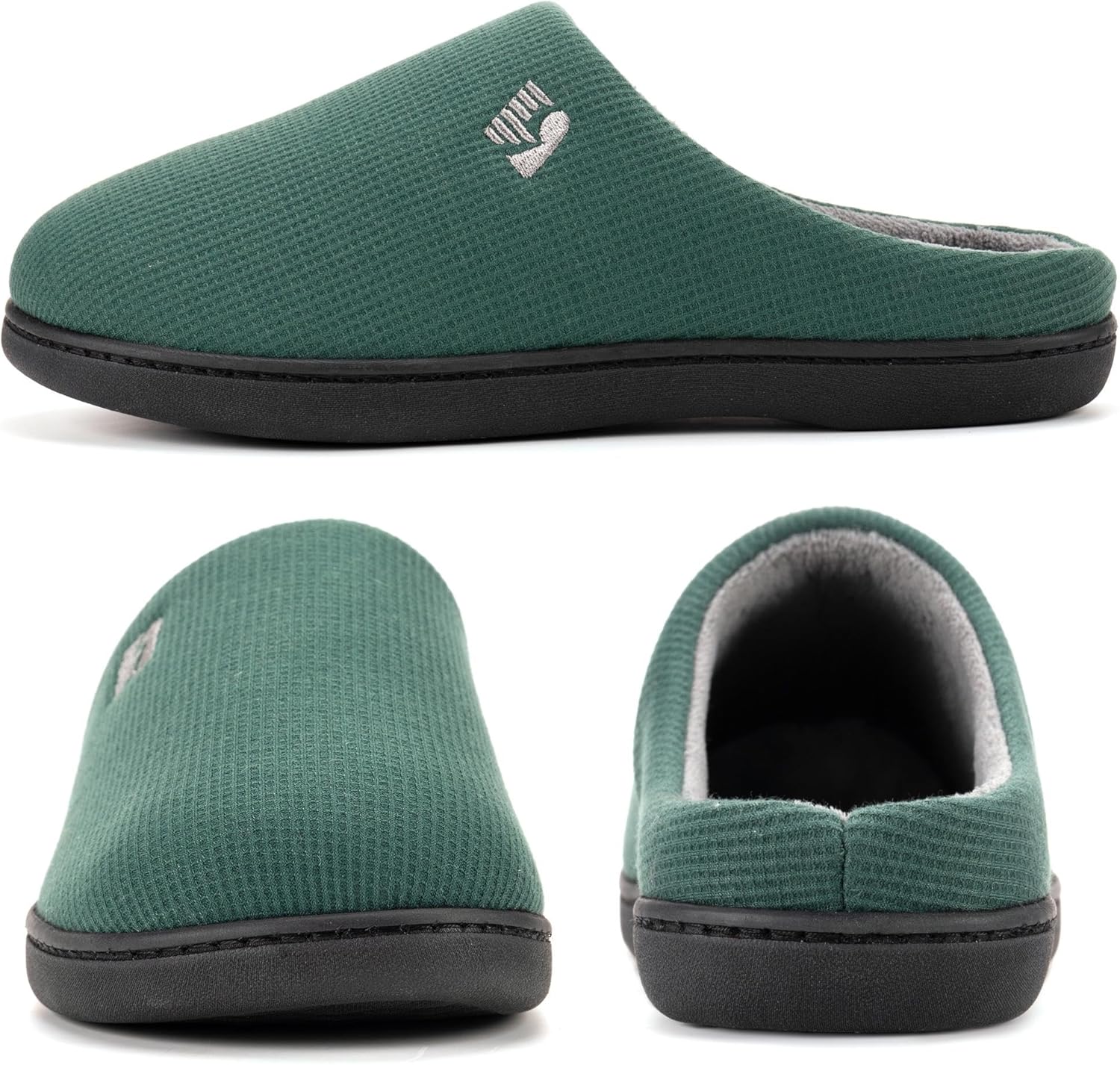 - Open back, slip-on style allows for easy on/off. The fitted upper and back lip help prevent your slipper from flopping off your foot, especially when walking down stairs.