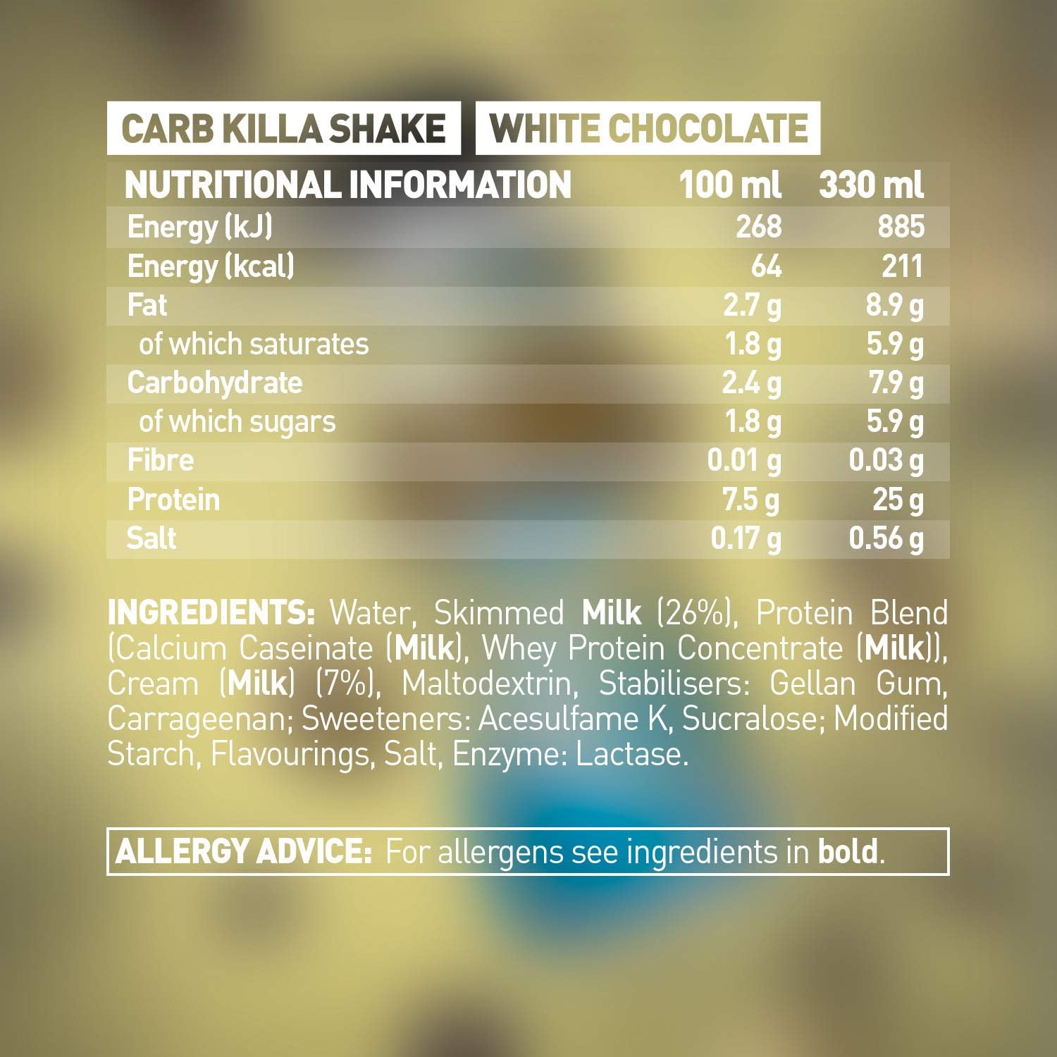 | Additives | Gellan Gum, Carrageenan, Acesulfame K, Sucralose |